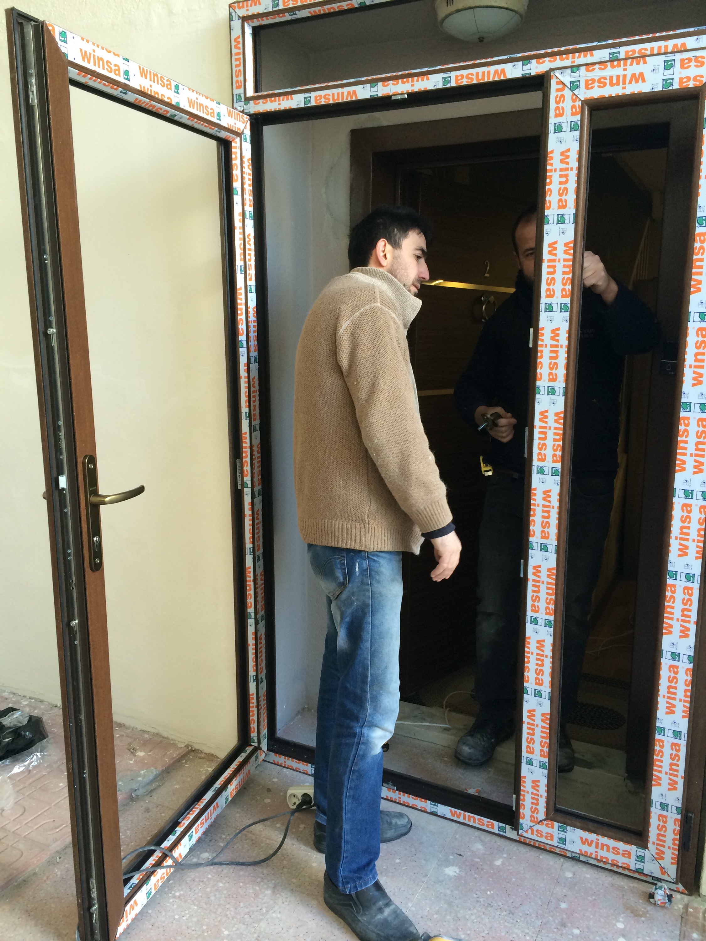 Eryaman 4. Etap Tunahan Mah. Bulunan Soyak Bloklarının Çok Katlı Bloklarındaki Bina Arka girişlerine Bakan Dış Çelik Kapının Önünene Soğuktan Muhafaza için Yapılan Pvc Kapı Montajından Kareler..