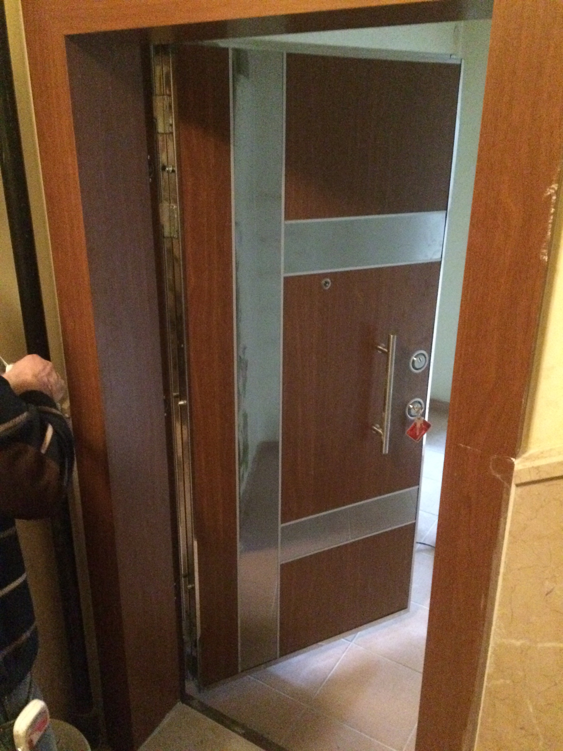 Etimesgut Kazım Karabekir Mahallesi istasyon caddesinde bulunan dairenin 14’lü Kale Multi Kilitli, F200 italyan ceviz + Krom Model Çelik Kapı Montajından Kareler…